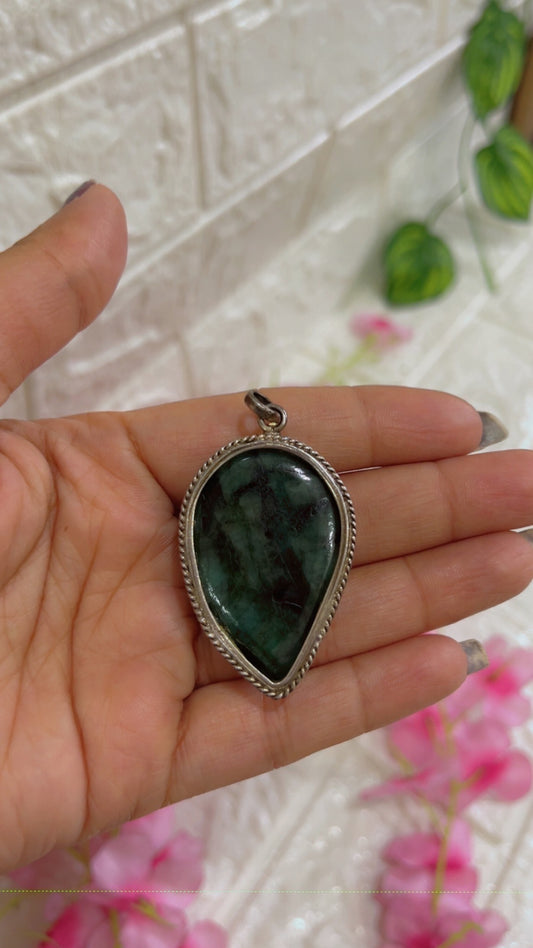 Pure Silver Natural Emerald Gemstone Necklace Jewelry