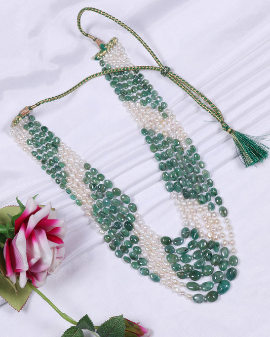Natural Emerald & Pearl Gemstone Beads Necklace Jewelry
