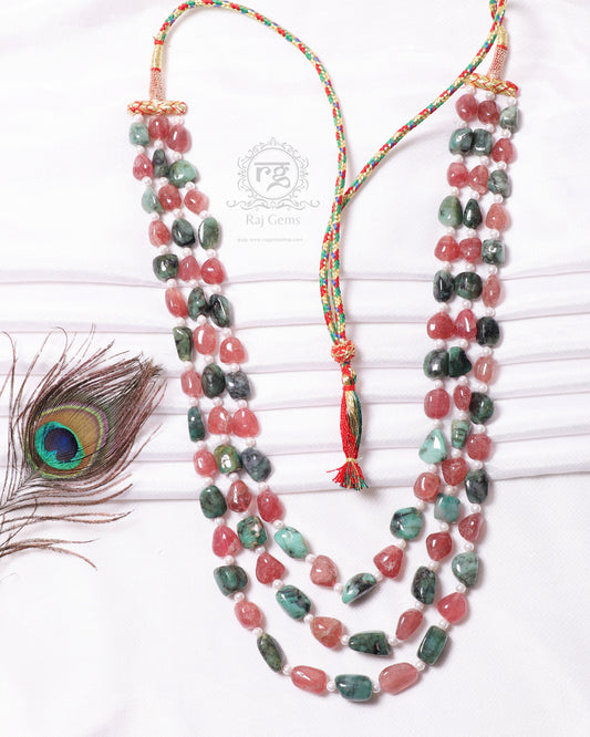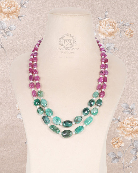 Natural Ruby And Emerald Gemstone Beads Necklace Jewellery
