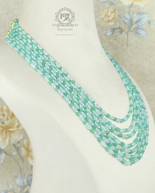 Natural Emerald & Aquamarine Gemstone Beads Necklace Jewelry