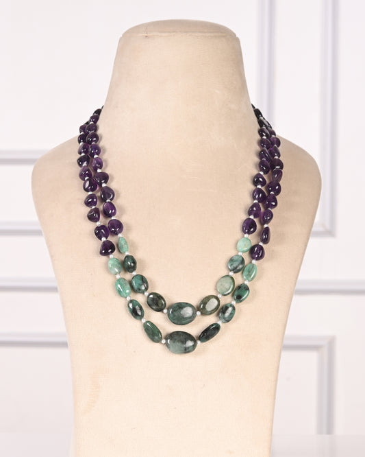 Natural Emerald & Amethyst Gemstone Beads Necklace Jewelry