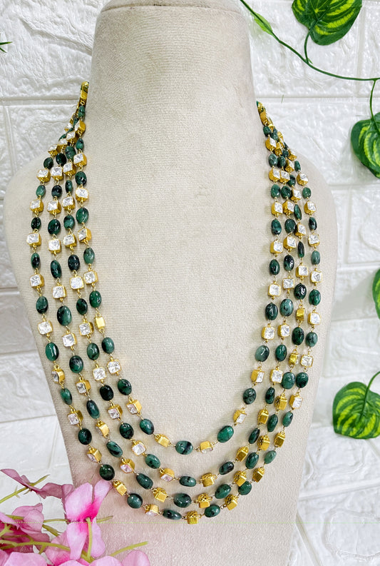 Designer Emerald Gemstone Beads Necklace Jewelry