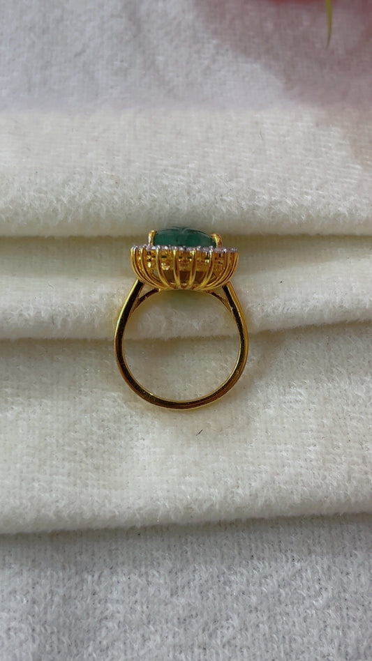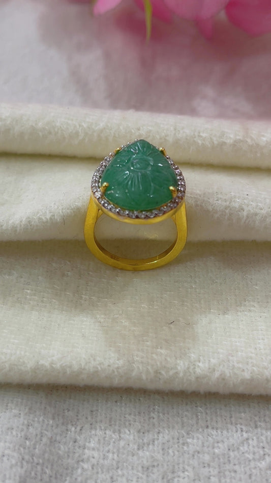 Natural Emerald Designer Pure Silver Adjustable Ring