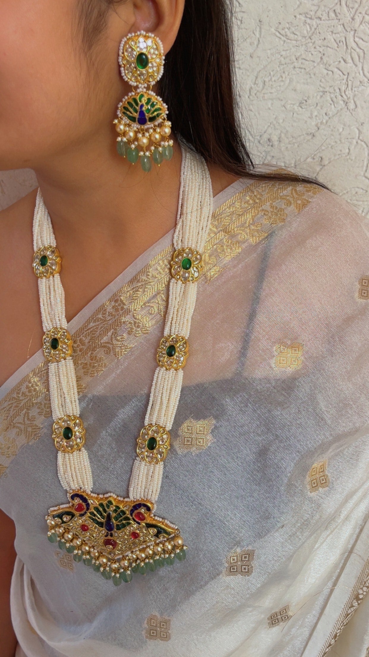 22K Gold Hallmarked Diamond Polki Green Necklace Jewelry