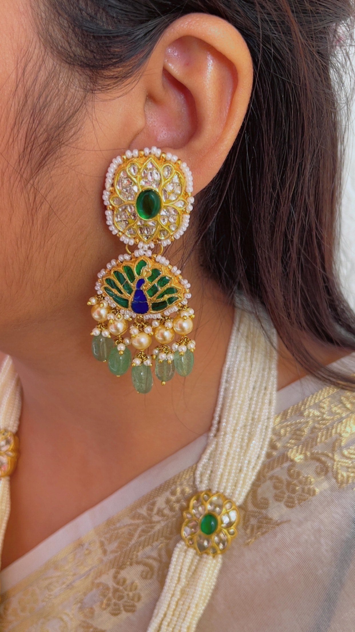 Crafted in 22kt gold with natural polki diamonds and gemstones.