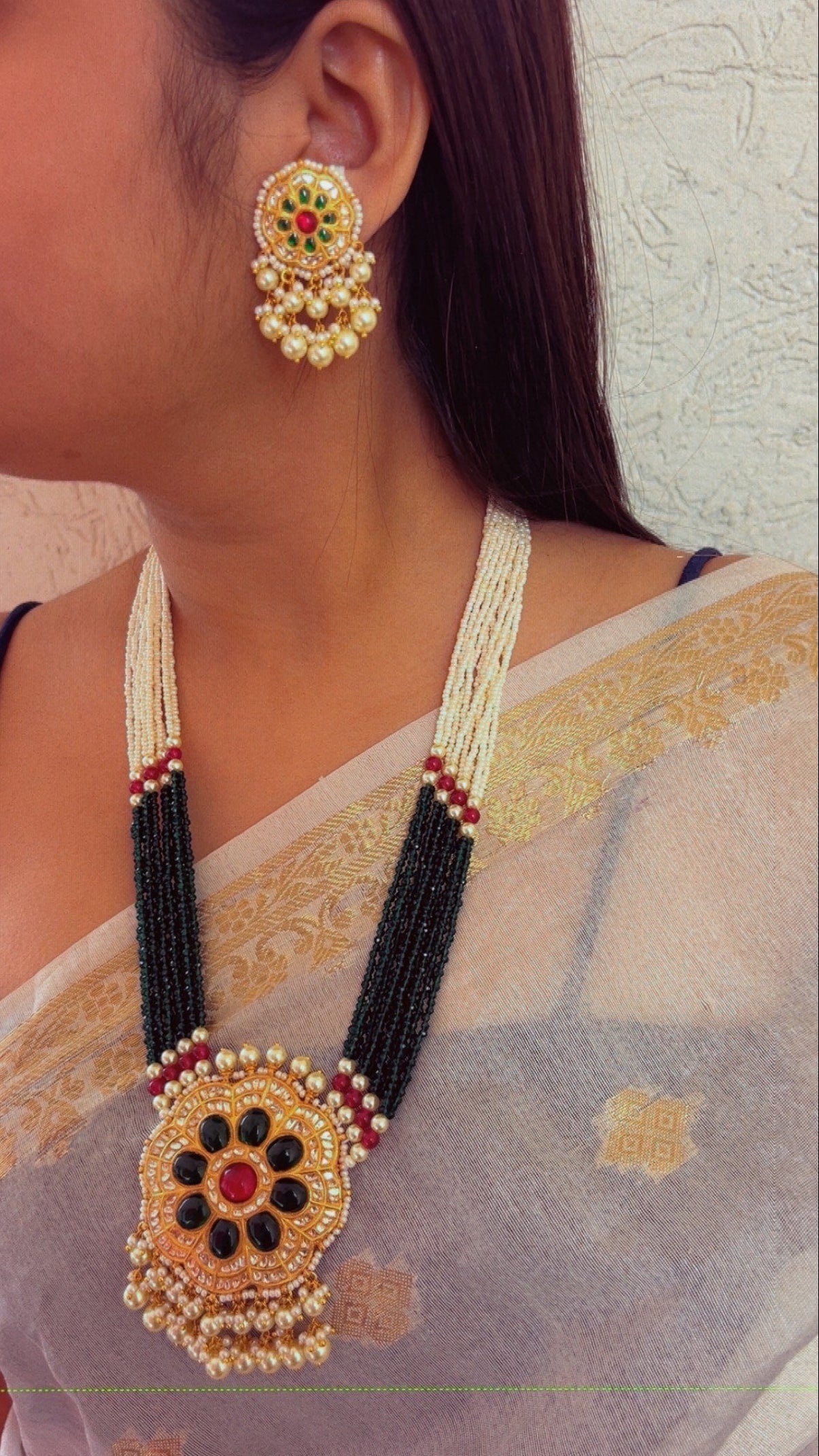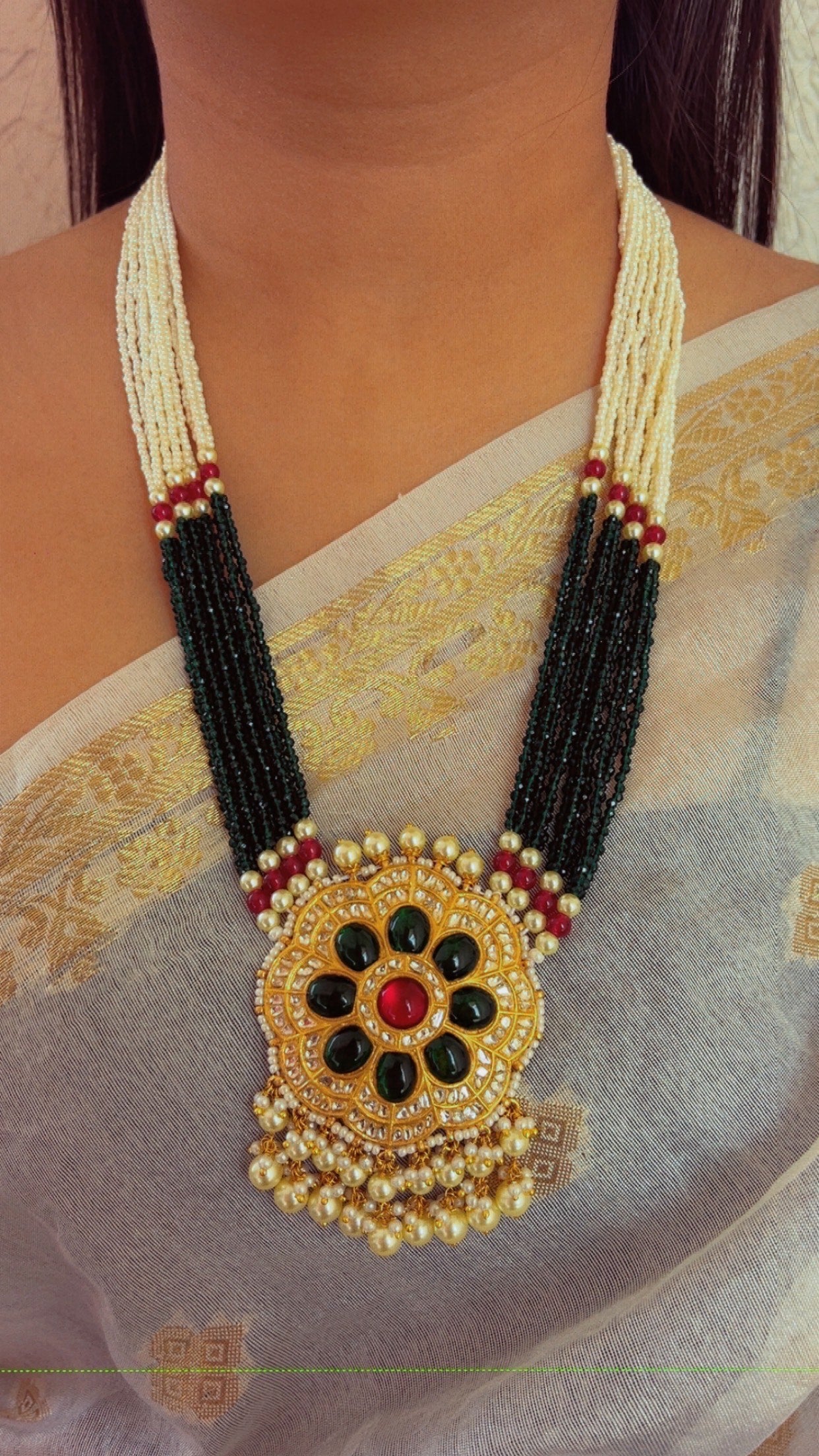 22K Gold Hallmarked Diamond Polki Green Necklace Jewelry