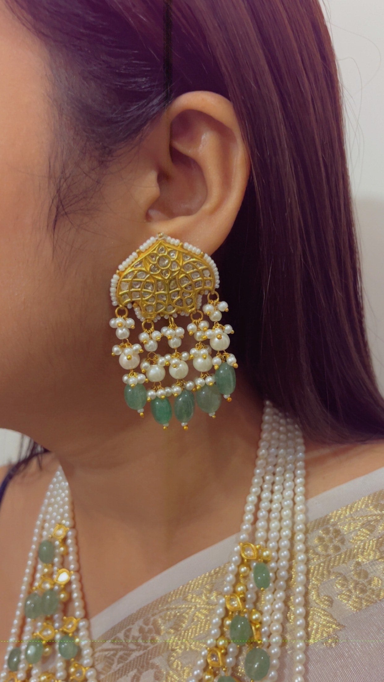 22K Gold Hallmarked Diamond Polki Green Rani Haar Necklace Jewelry