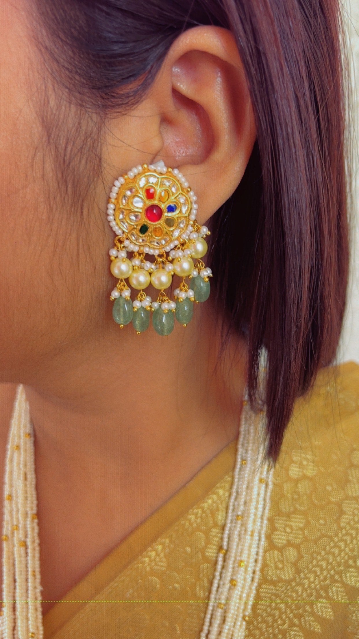 Crafted in 22kt gold with natural polki diamonds and gemstones.