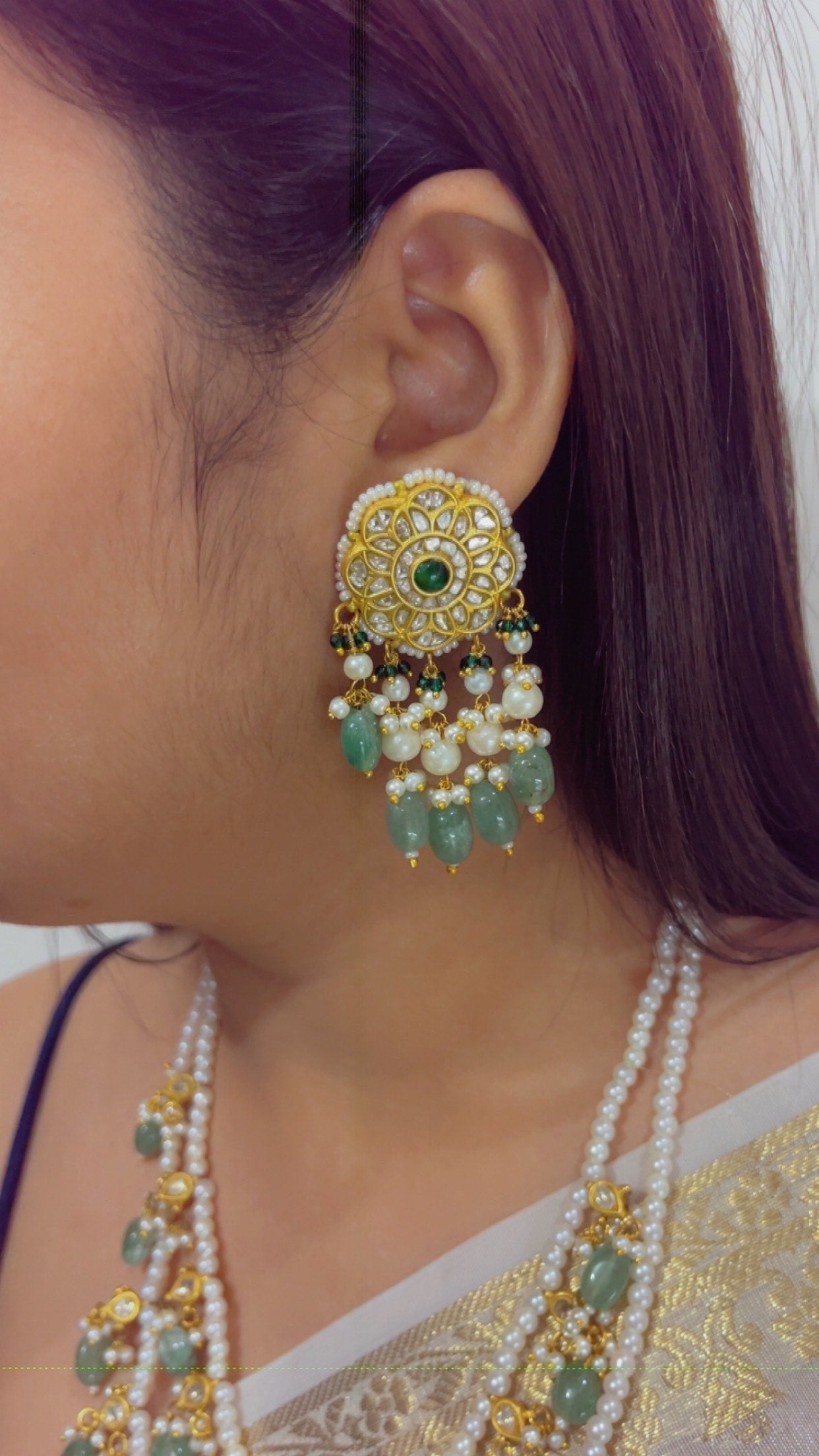 Crafted in 22kt gold with natural polki diamonds and gemstones.