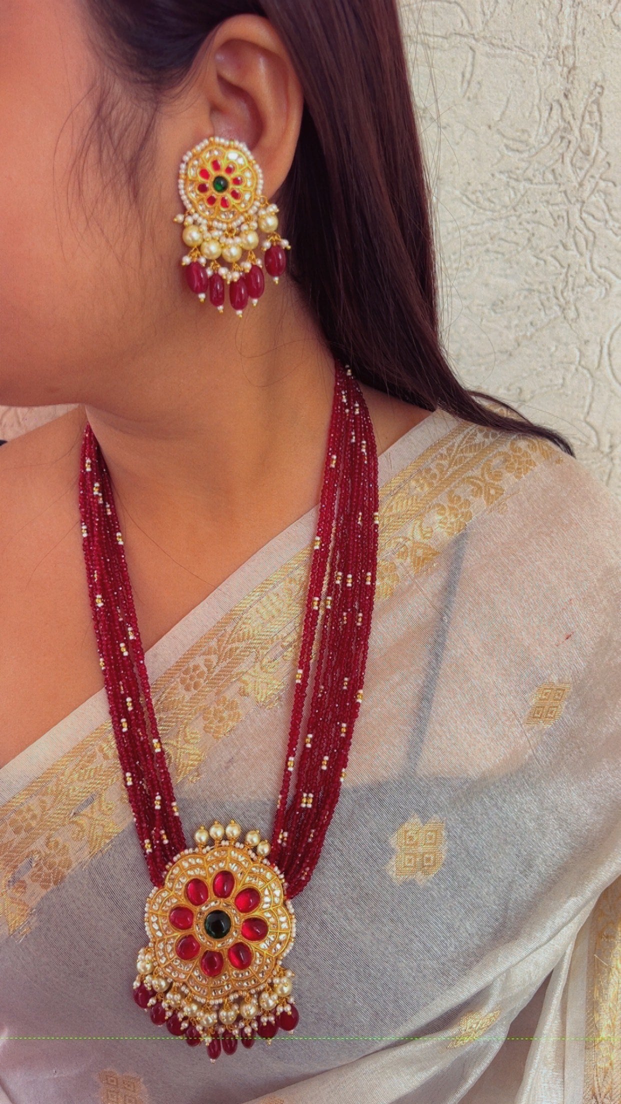 22K Gold Hallmarked Diamond Polki Red Necklace Jewelry