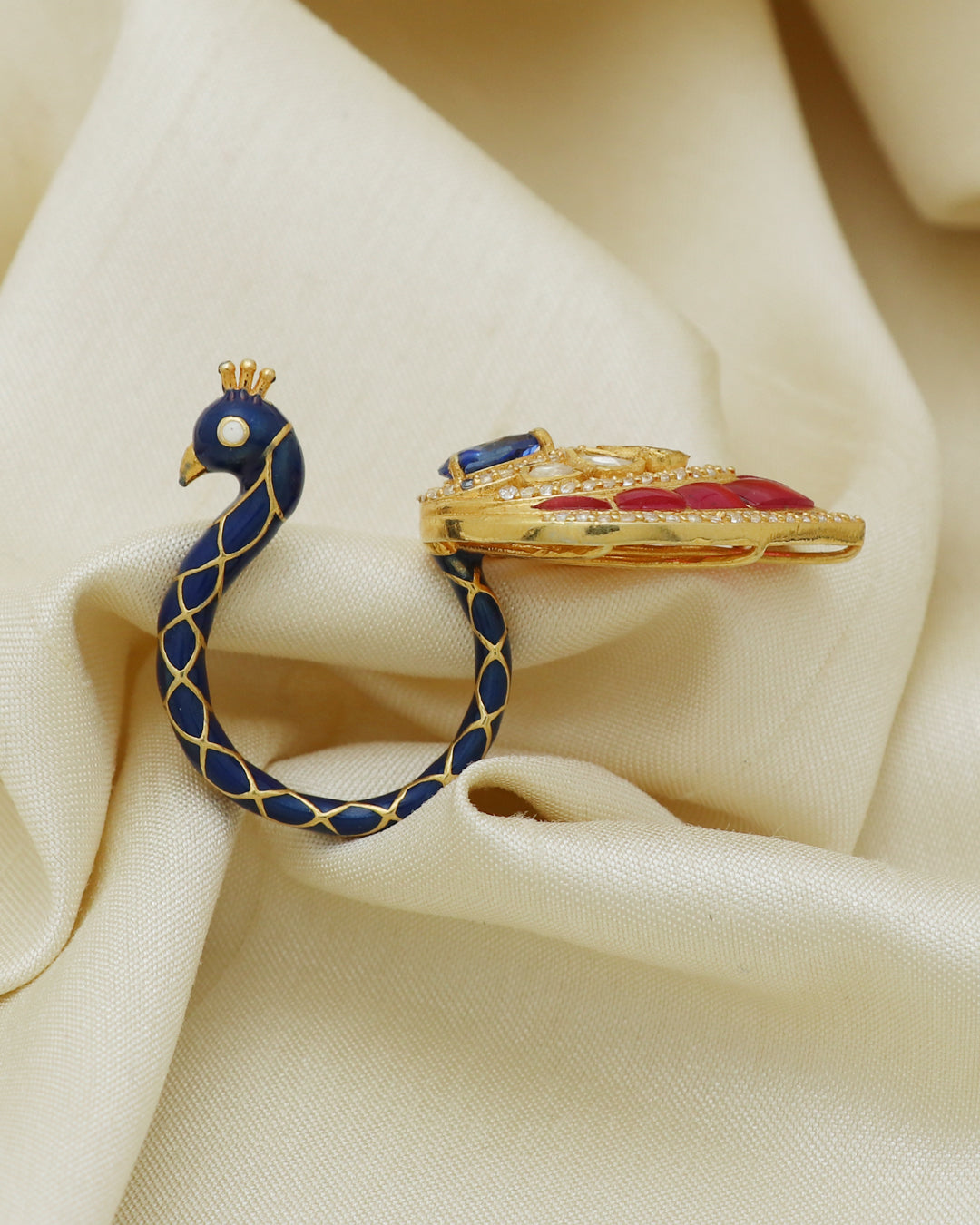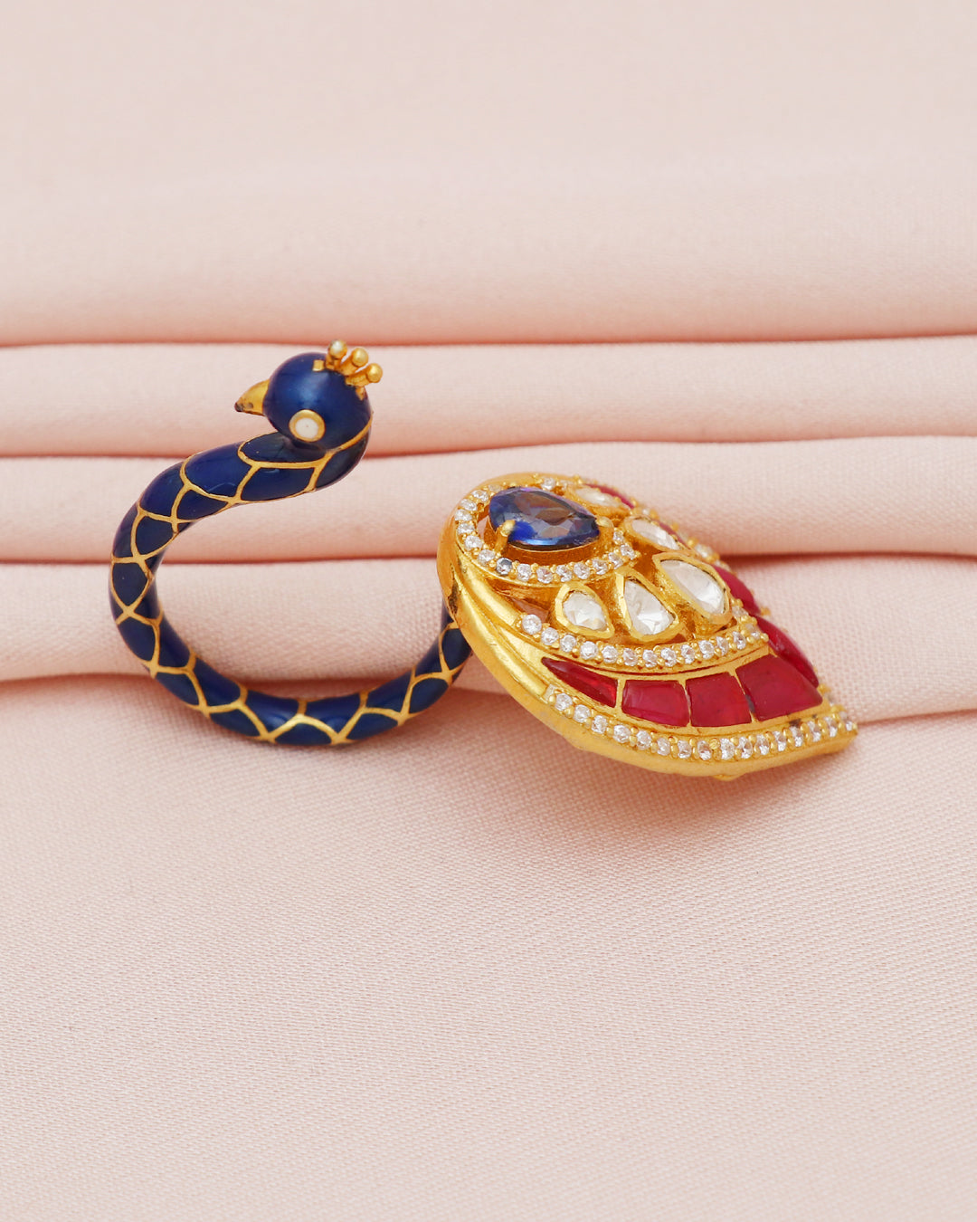 925 Silver Moissanite Peacock Adjustable Ring Weight - 11.5 Gram SKU:RG339