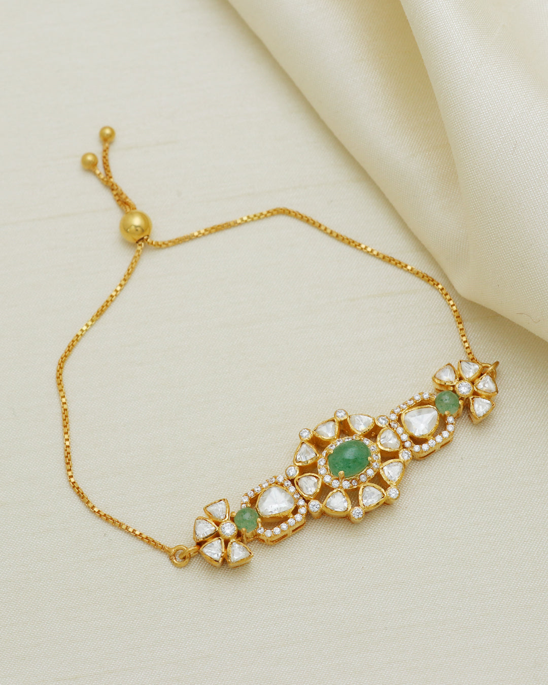 925 Silver Moissanite Polki Adjustable Bracelet Jewelry