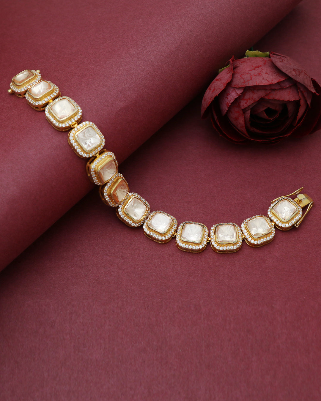 925 Silver Moissanite Polki Bracelet Jewelry Weight - 41.7 Gram SKU:RG308