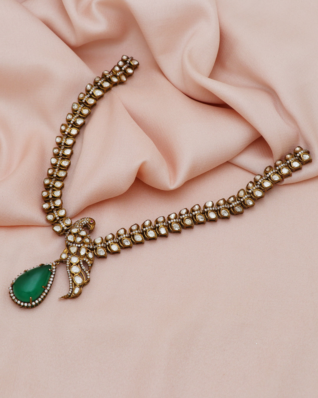 925 Silver Moissanite Polki Peacock Necklace