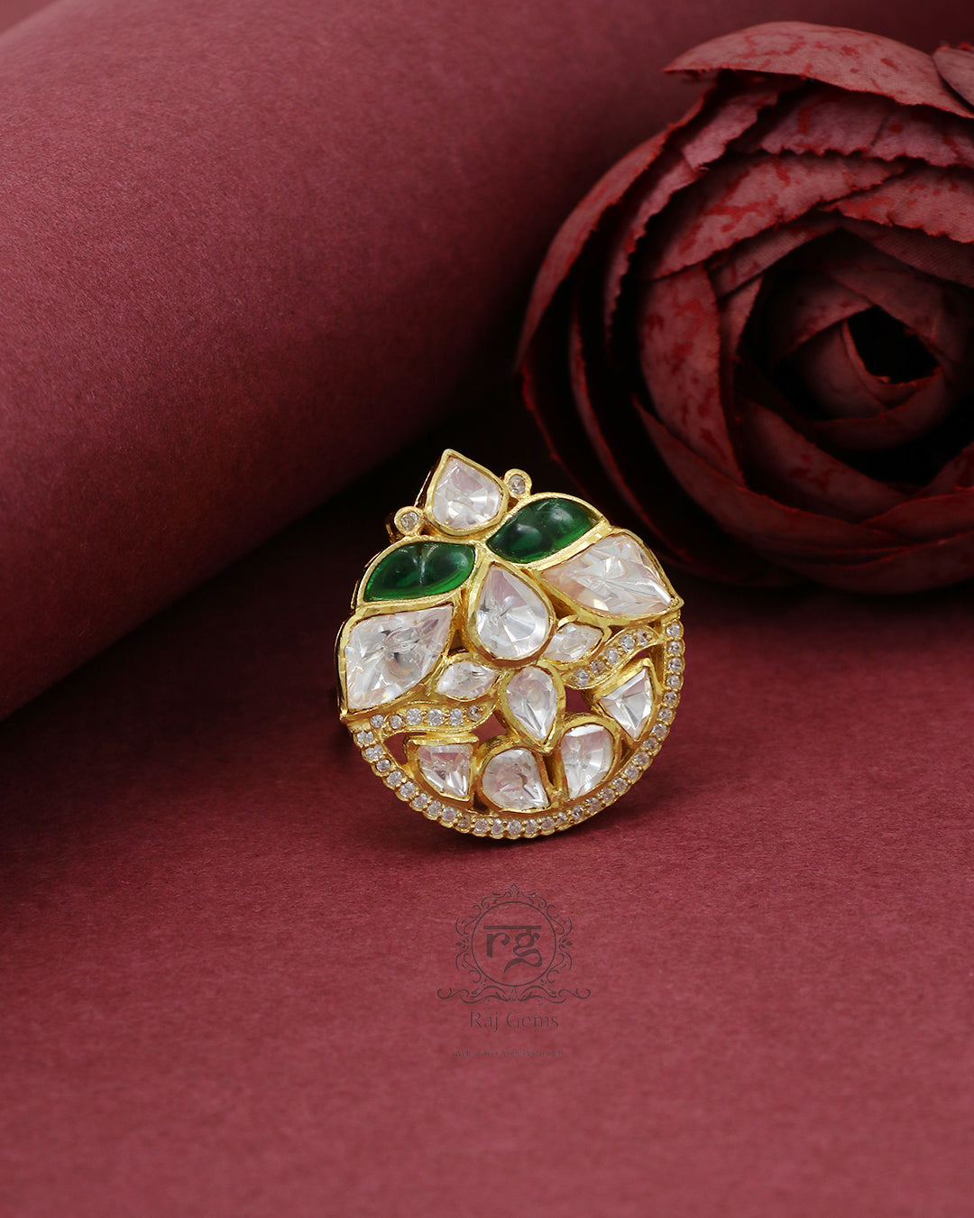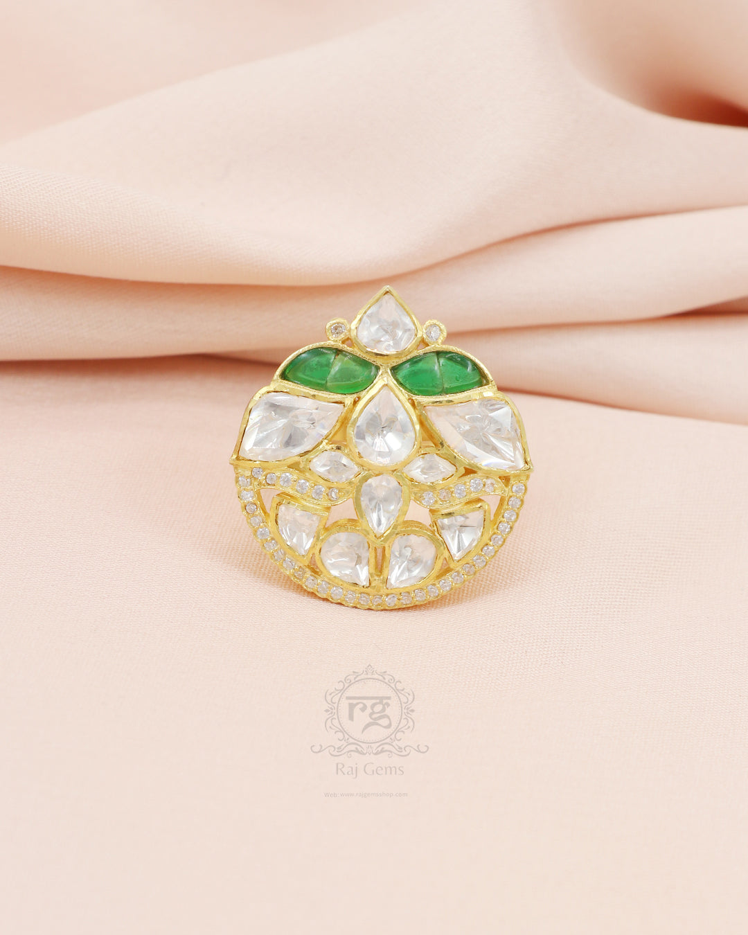 925 Silver Moissanite Polki Ring