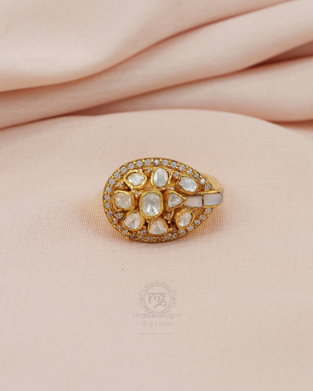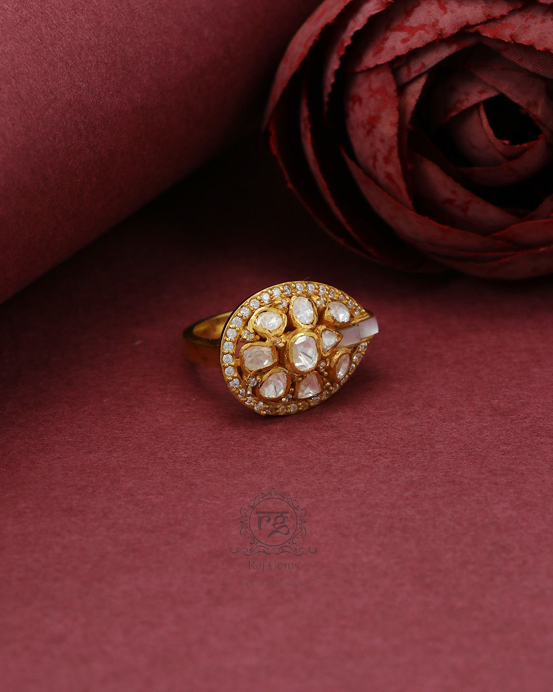 925 silver Moissanite Polki Ring Weight - 6 Gram Approx. SKU:RG472