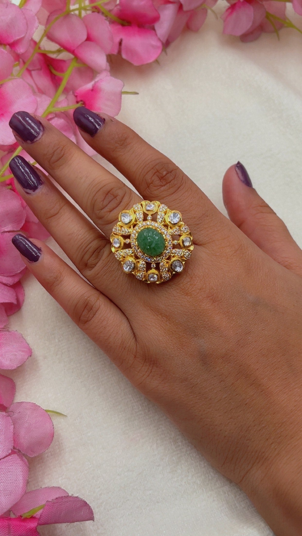 925 silver Moissanite Polki Ring