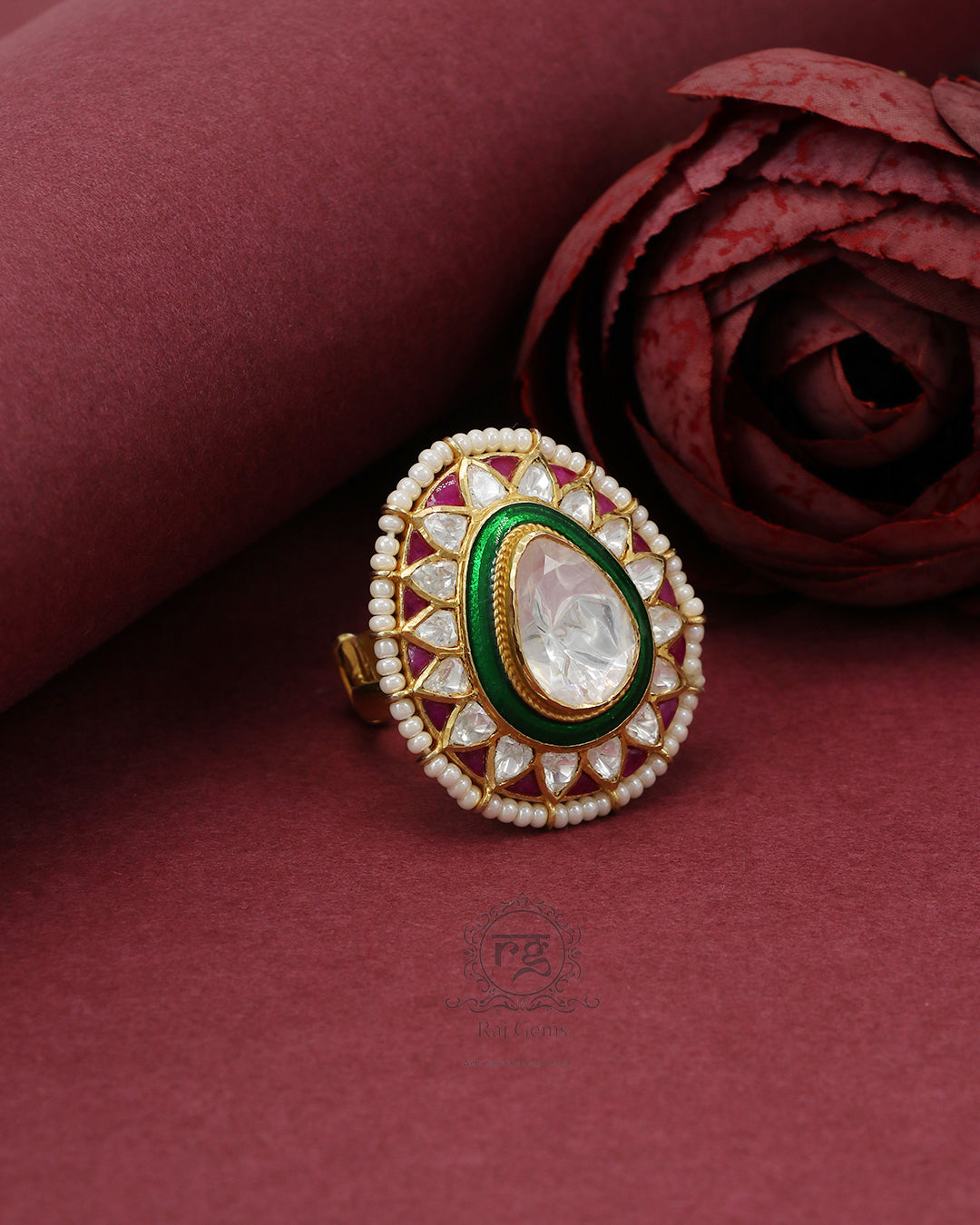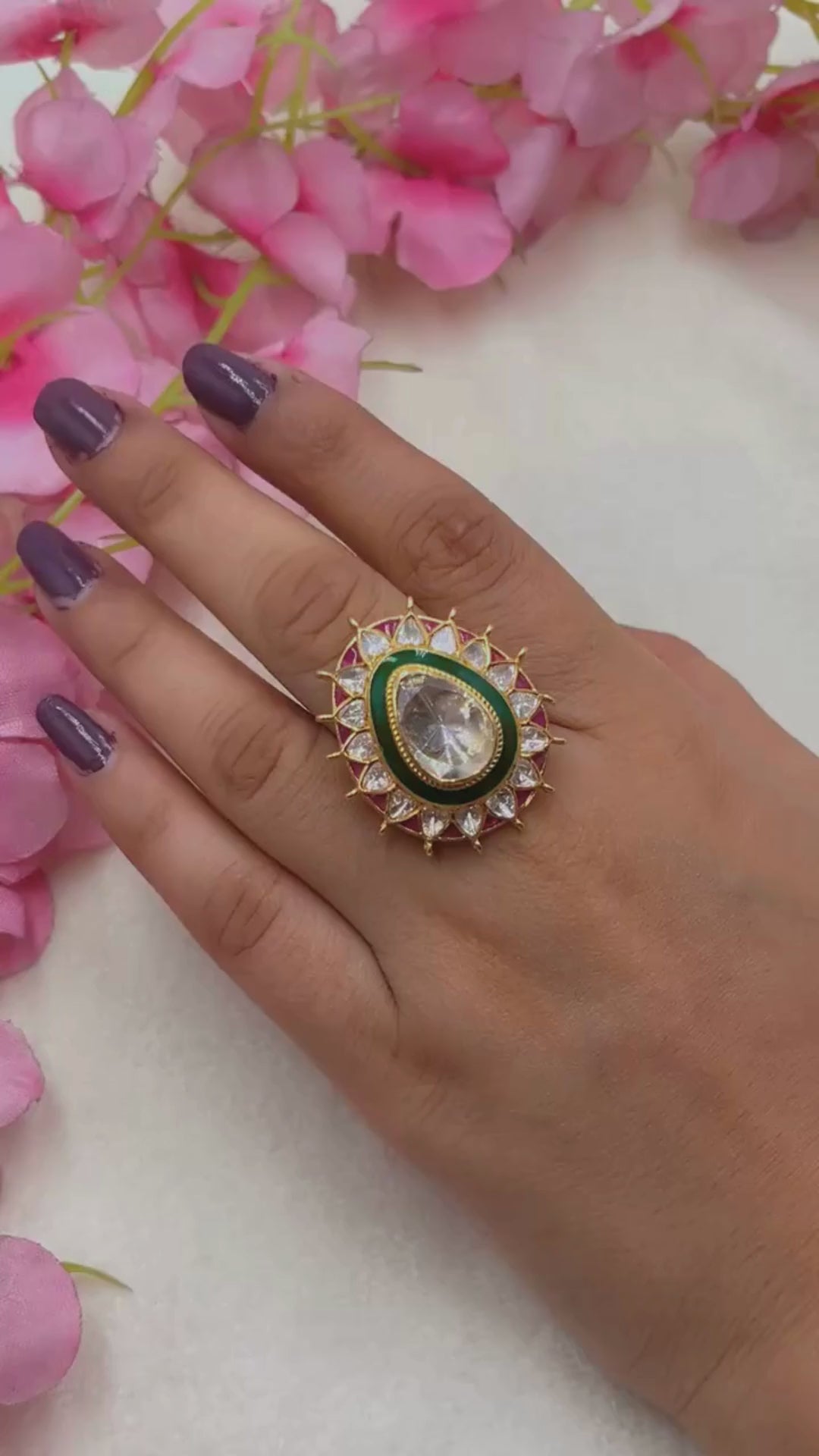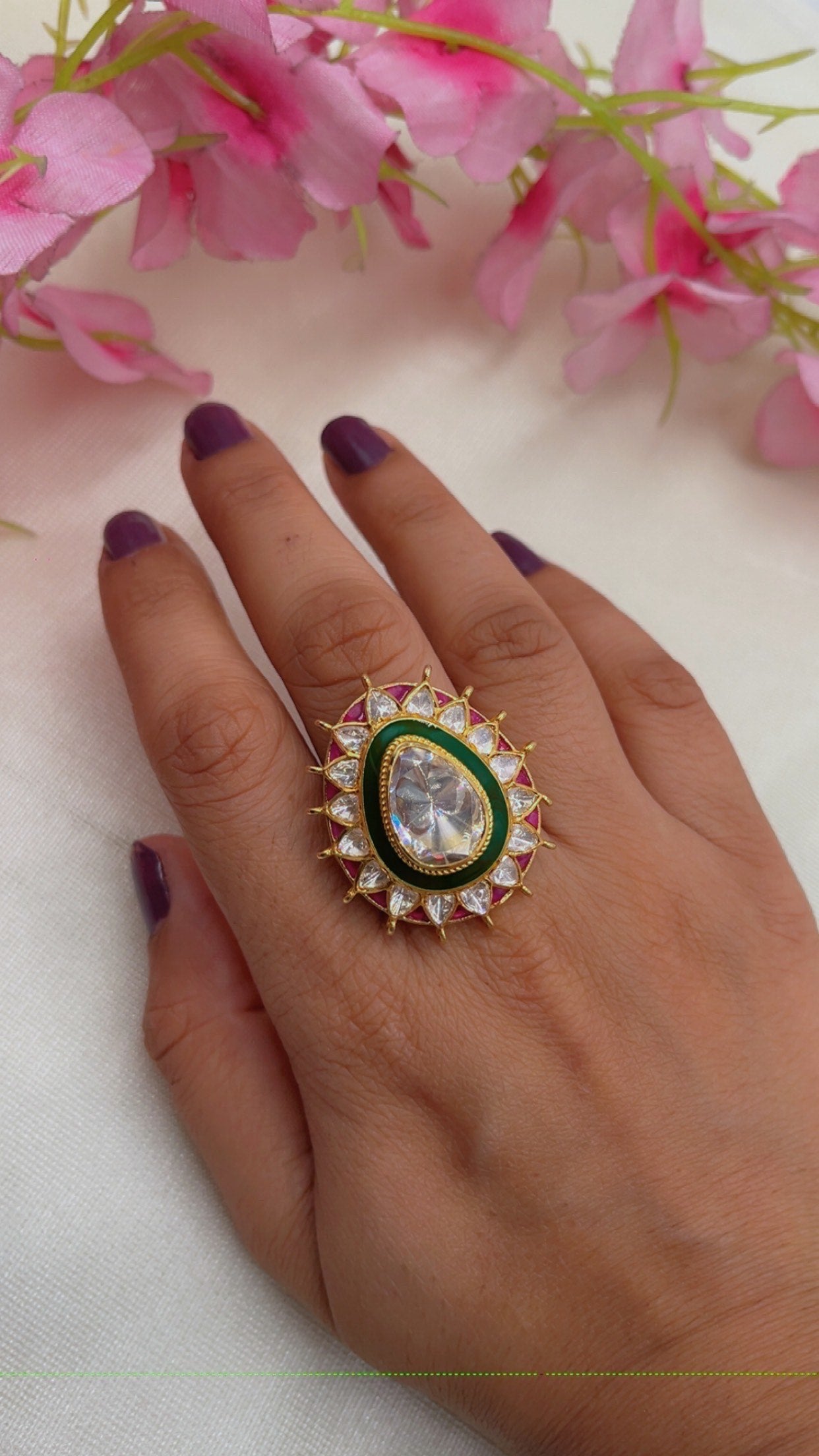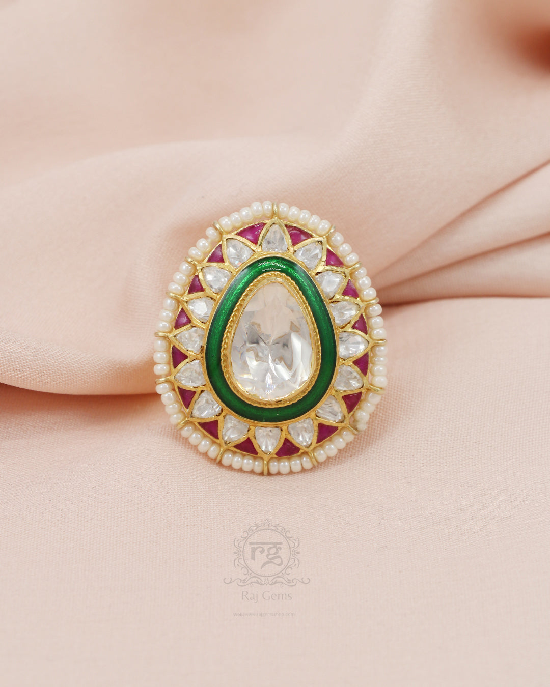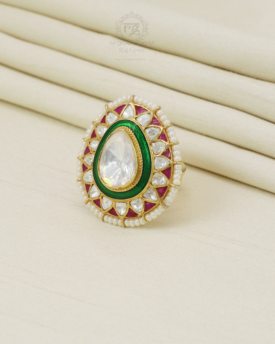 925 silver Moissanite Polki Ring