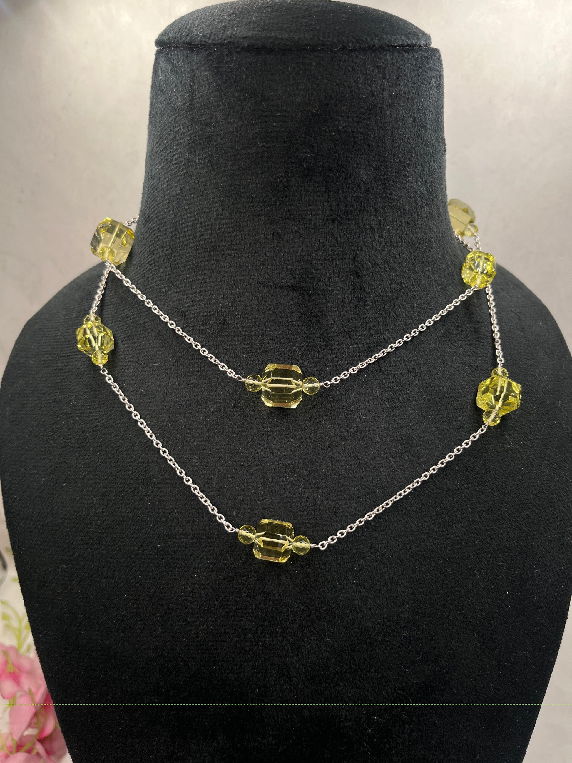 Designer 925 Silver Lemon Quartz Chain Necklace Jewelry