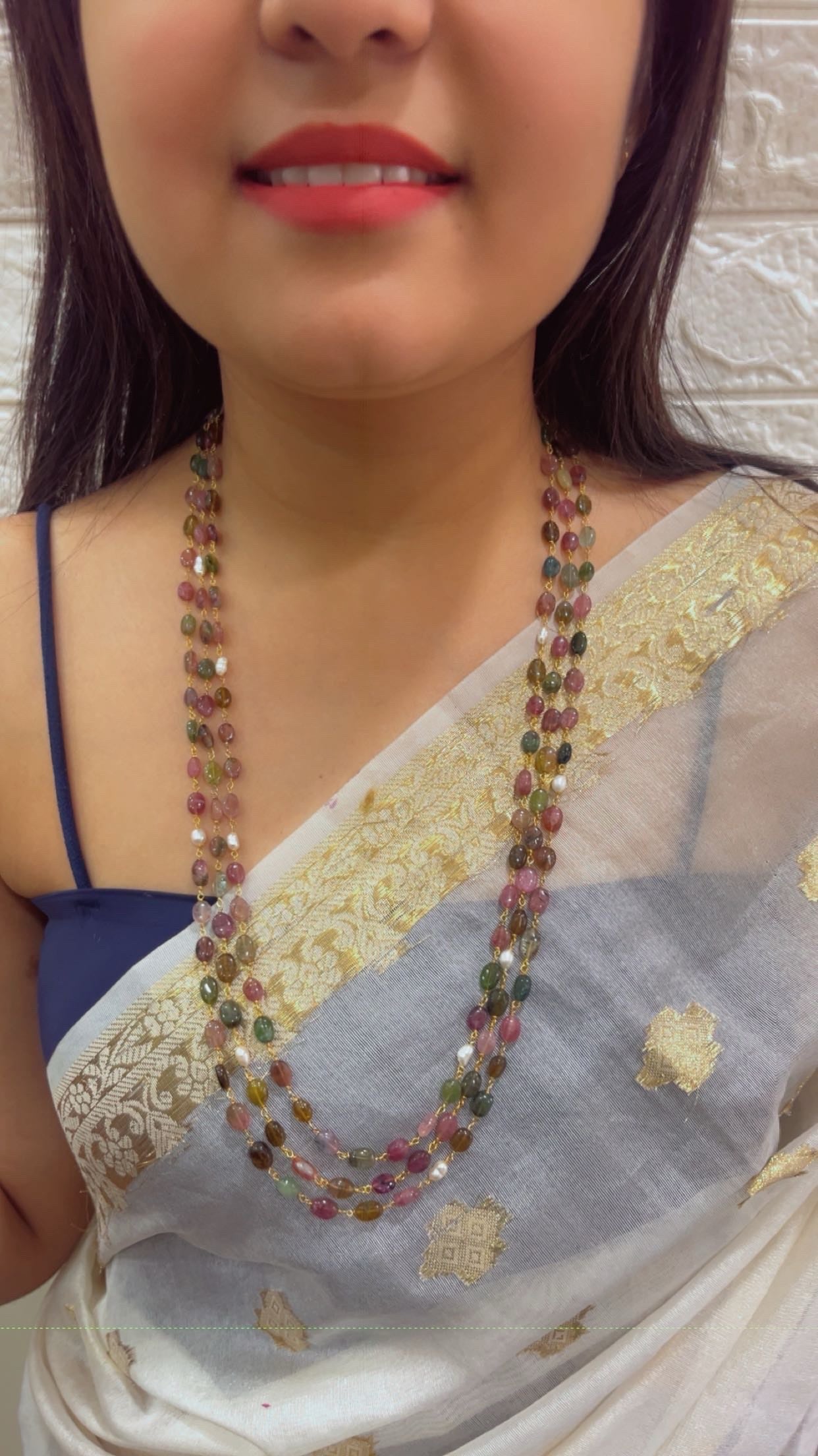 Natural 925 Silver Multi Tourmaline Gemstone Beads Necklace Jewelry