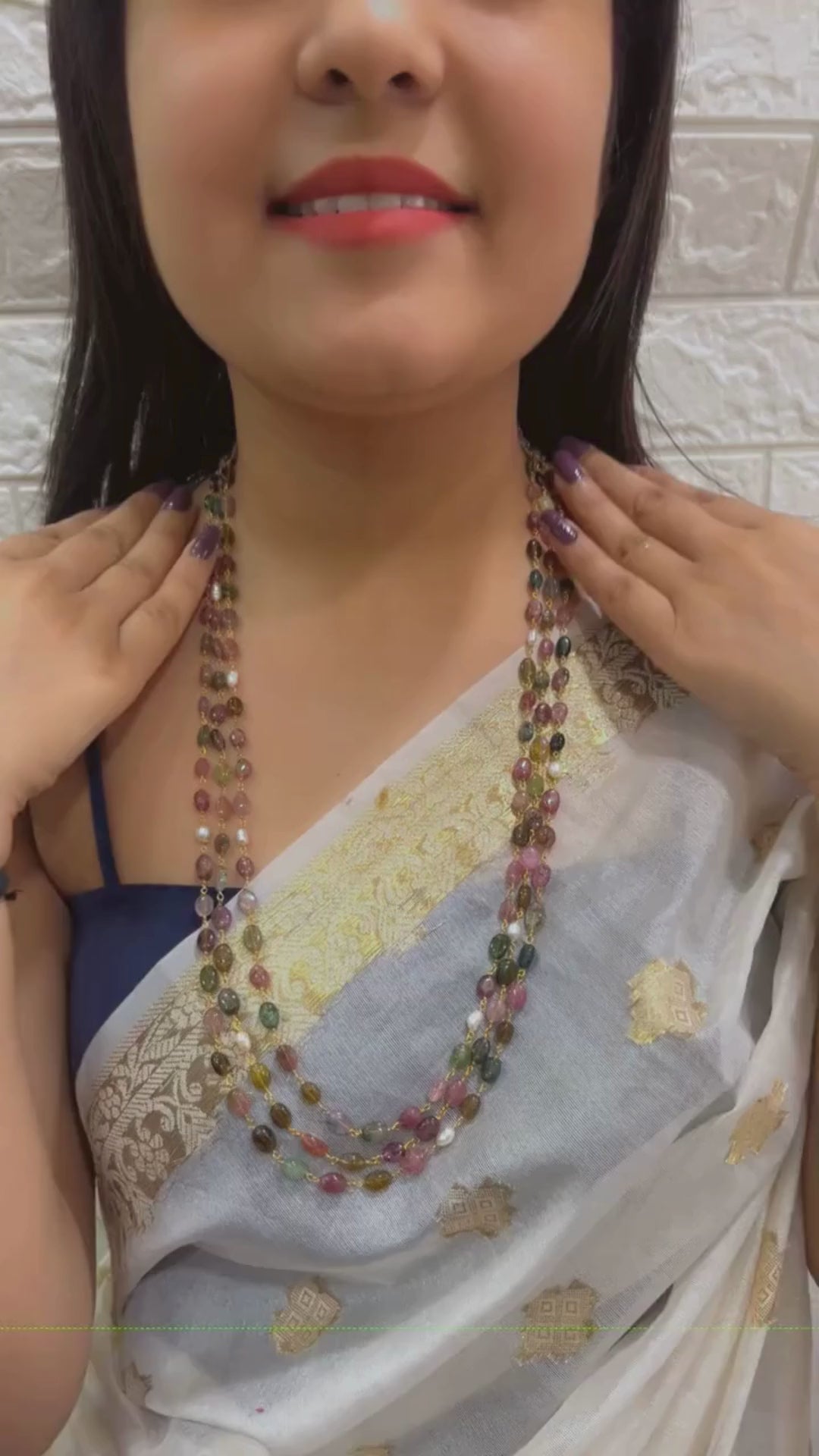 925 Silver Natural Multi Tourmaline Gemstone Beads Necklace Jewelry