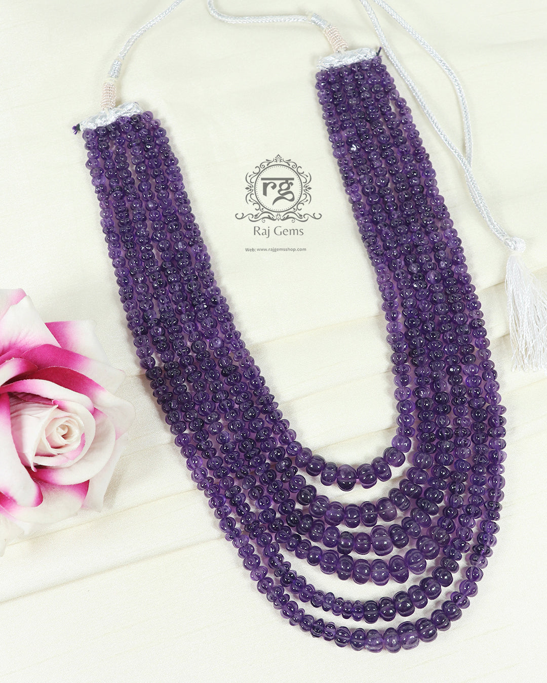 Natural Amethyst Gemstone Pumpkin Beads Necklace