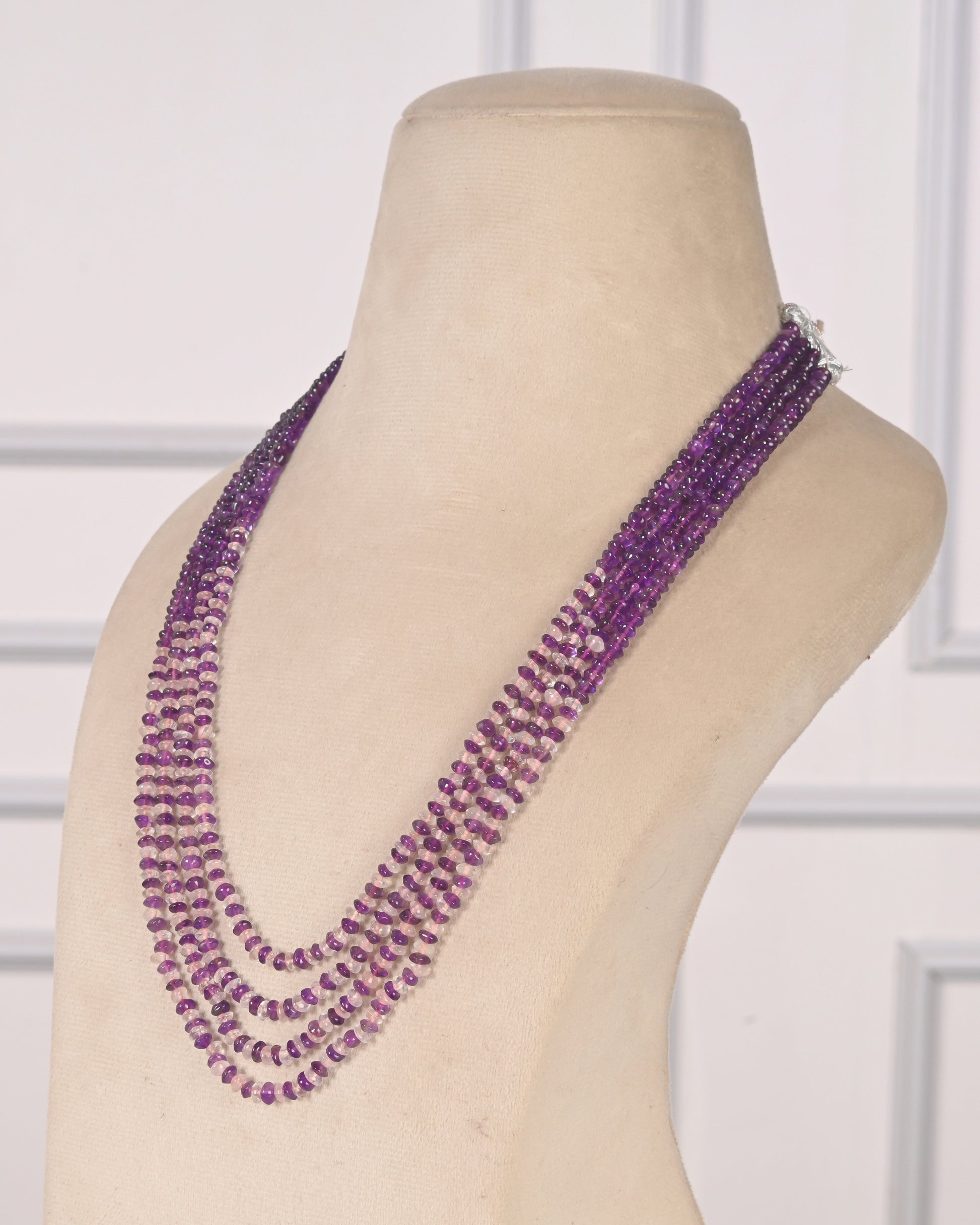 Natural Amethyst & Rose Quartz Gemstone Rondelle Smooth Beaded Necklace