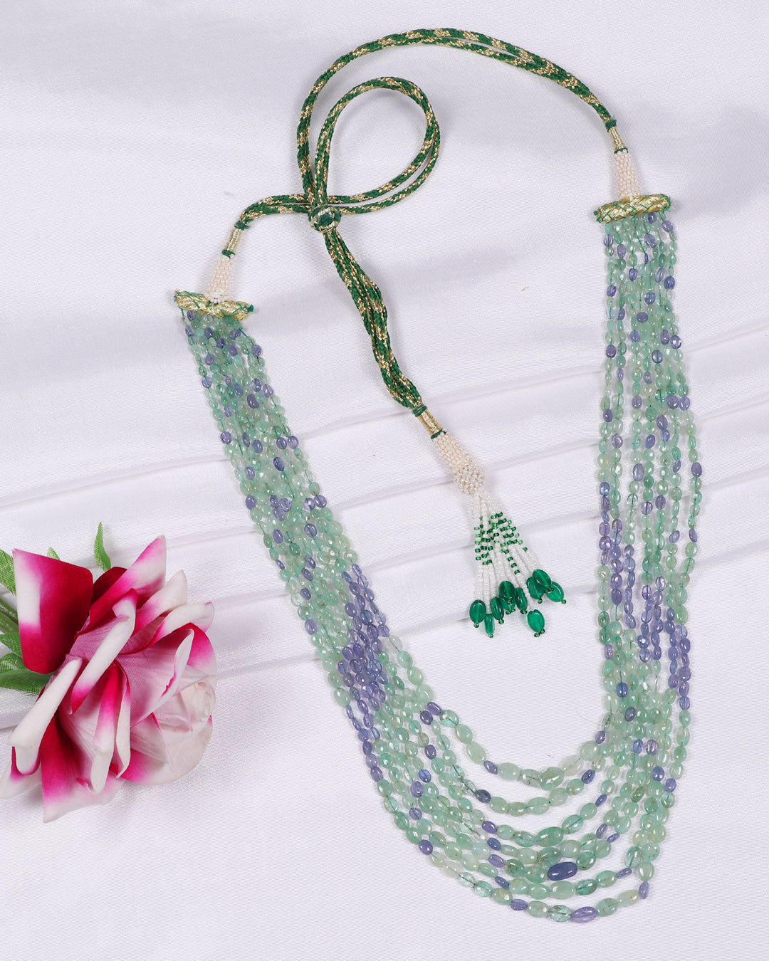 | Natural Emerald & Tanzanite Gemstone Beads Necklace Jewelry |