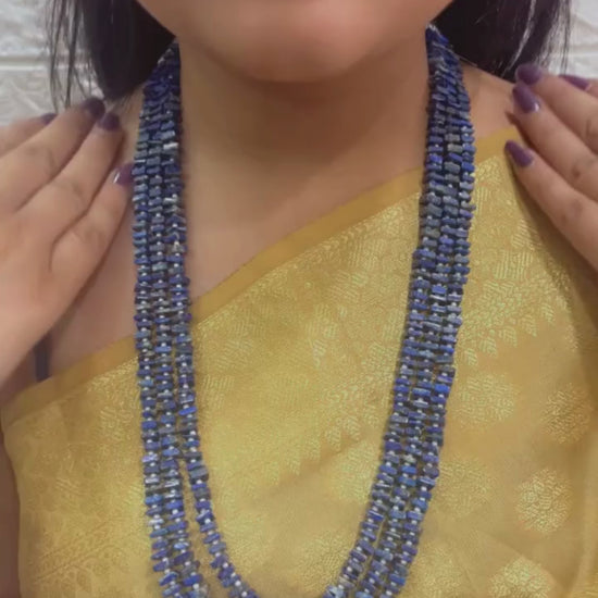 Natural Lapis Lazuli Gemstone Square Beads Necklace Jewelry length - 18-20" Inches |