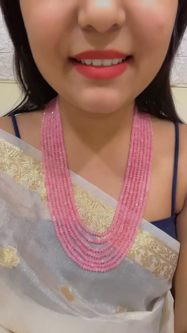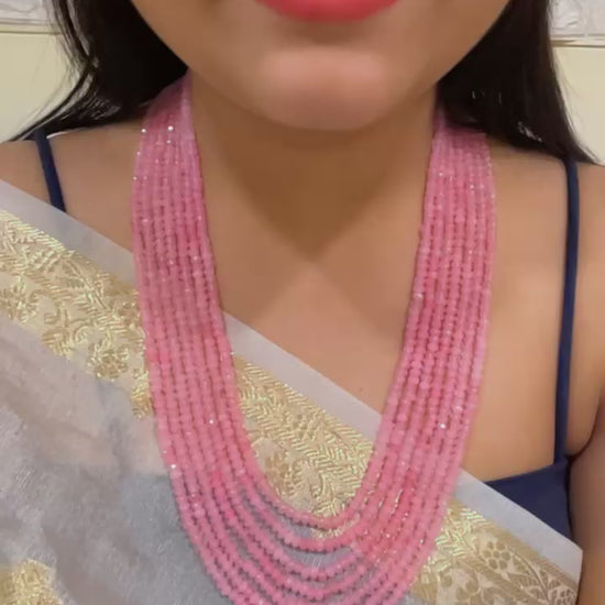Natural Pink Quartz Gemstone Beads Necklace Jewelry