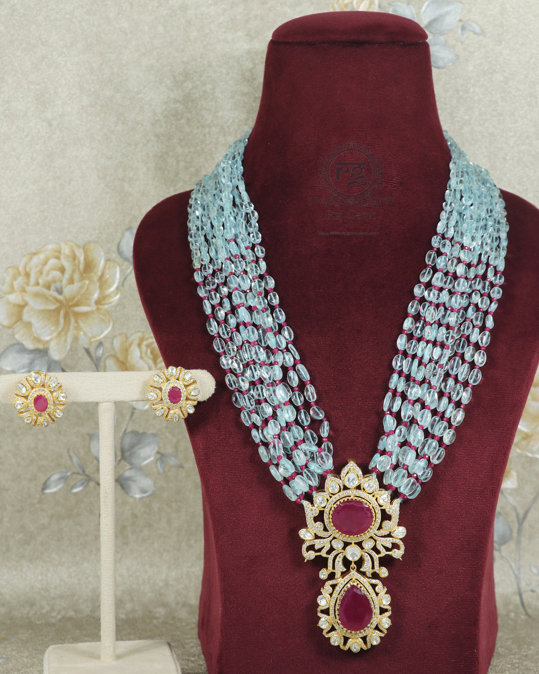 Natural Ruby & Aquamarine beads Gemstone Necklace Jewelery