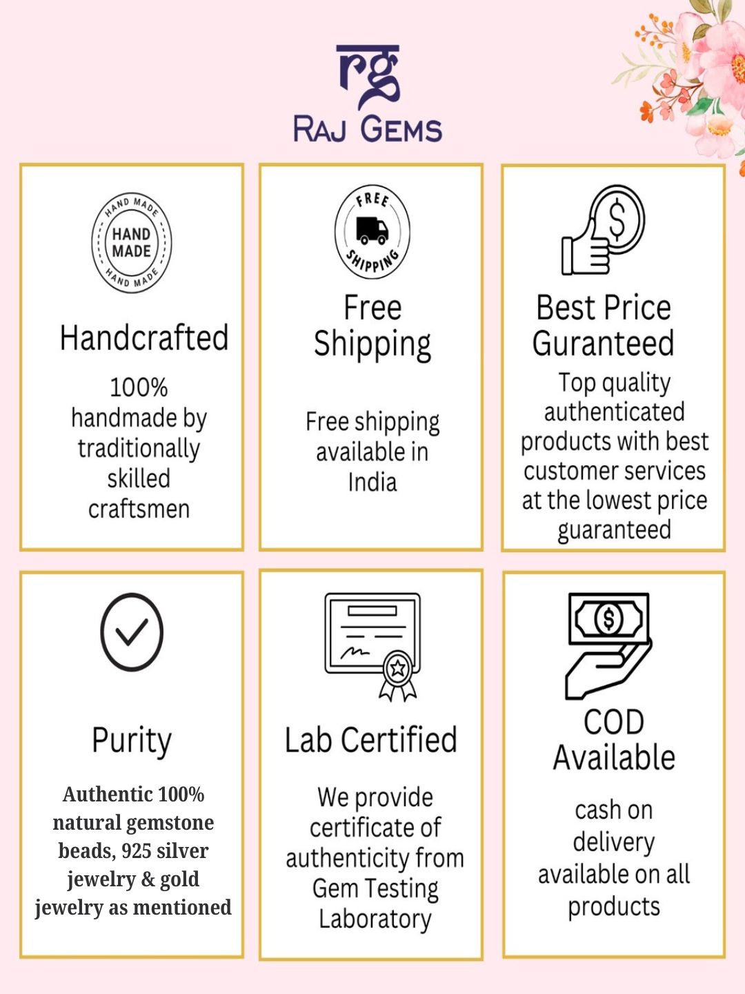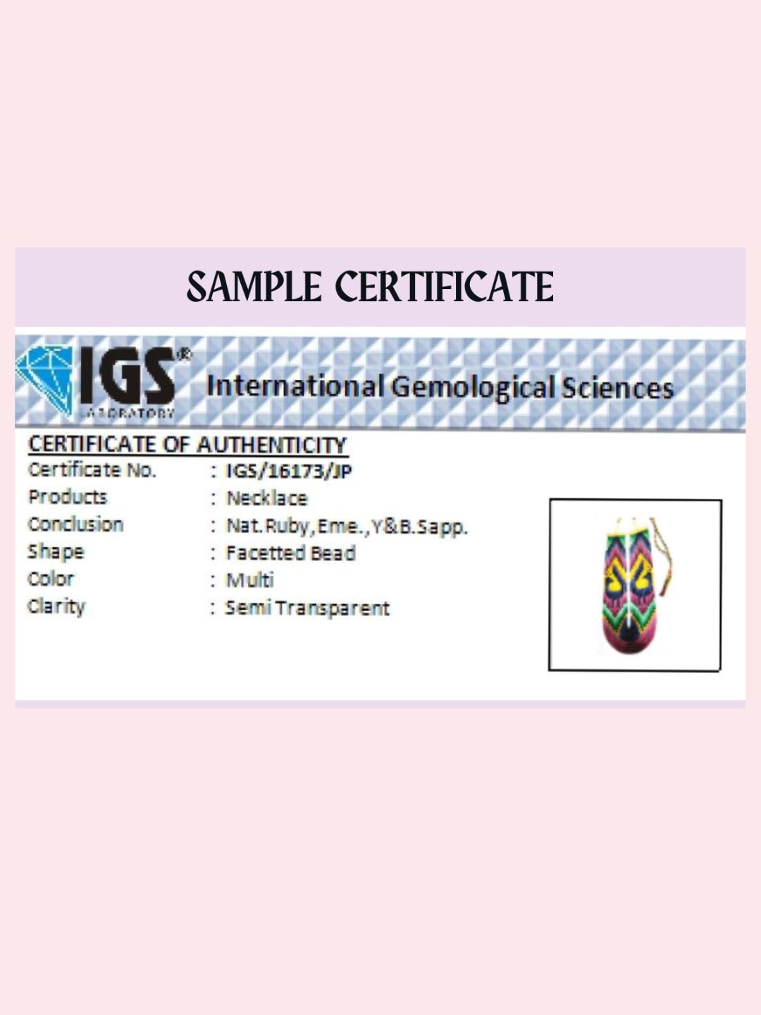 All Precious Beads and necklaces purchased will come with an authentic gem certificate from a renowned laboratory.