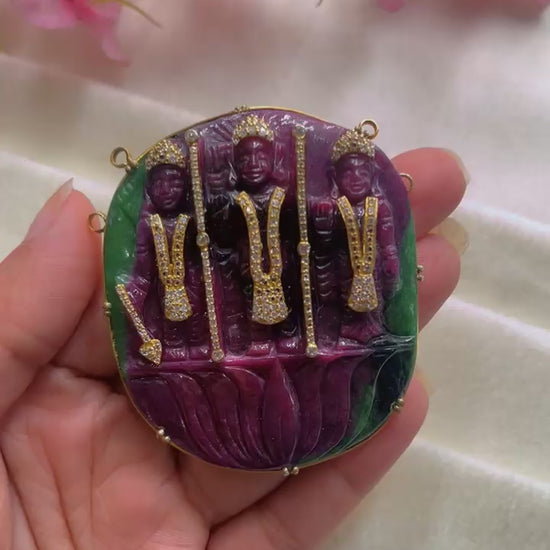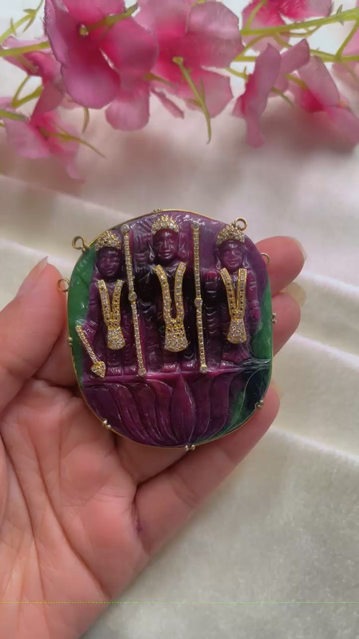 Natural 925 Silver Ruby Gemstone Ram Darbar Carving